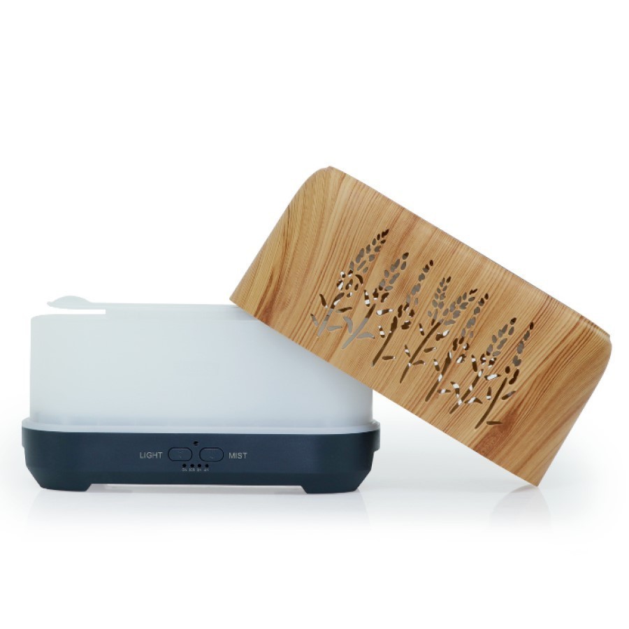Difusor Umidificador Aromatizador NA COR MADEIRA com Simulador de Chamas Lareira LEd