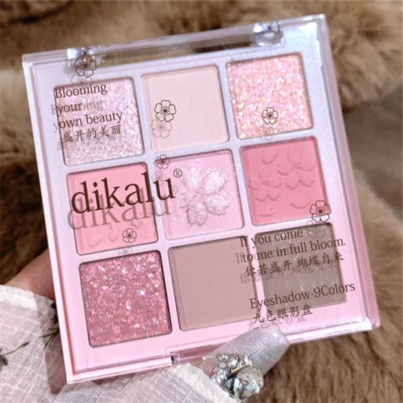 DIKALU Placa De Sombra De Olho De 9 Cores Rosa Pérola Fosca Brilhante Flor De Cerejeira Romântica