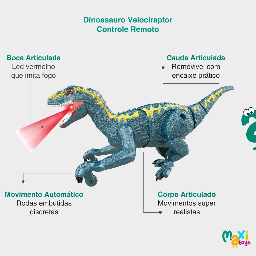 Dinossauro de Brinquedo Anda e Emite Som com Controle Remoto Velociraptor - Maxi Toys Prepare-se para mergulhar em uma aventura pré-histórica com o incrível Dinossauro de Controle Remoto da Maxi Toys! Com design inspirado no poderoso Velociraptor, este brinquedo promete encantar os pequenos com movimentos, luzes e sons que parecem de verdade. Produzido com material super resistente, o dinossauro possui textura realista que imita a pele do animal num tom azul vibrante com detalhes em amarelo. Seu grande diferencial está na boca articulada com iluminação em LED vermelho que imita fogo, deixando a brincadeira ainda mais emocionante. Graças às suas articulações flexíveis, o dinossauro não apenas se movimenta de forma automática, como também abre a boca, solta rugidos poderosos, balança o corpo e a cauda, com movimentos incrivelmente realistas que transportam as crianças direto para a era dos dinossauros. Além disso, a cauda destacável com encaixe prático deixa a montagem ainda mais divertida e envolvente. Ele possui bateria recarregável via cabo USB Tipo-C, garantindo muito mais economia e comodidade no dia a dia, e seu controle remoto é simples e fácil de usar, permitindo que os pequenos comandem todos os efeitos com praticidade. Necessário 2 pilhas AA (não inclusas). Mais do que um brinquedo, este dinossauro é uma experiência completa que estimula a criatividade, coordenação motora e interação social, garantindo longas horas de diversão para toda a família, transformando a brincadeira em uma aventura pré-histórica inesquecível. Principais Características: - Idade Recomendada: A Partir de 3 anos - Design e Textura Realista Inspirado no Velociraptor - Boca Articulada com Efeito de Luz em LED Vermelho que Imita Fogo - Efeitos Sonoros de Rugidos Poderosos para Maior Realismo - Movimento para Frente e para Trás com Rodas Embutidas Discretas - Corpo Todo Articulado para Movimentos mais Realistas - Corpo que Balança e Cauda Flexível que se Mexe Sozinha - Cauda Removível com Encaixe Prático - Articulações Móveis e Flexíveis - Fácil de montar e desmontar - Bateria Recarregável via Cabo USB Tipo-C (acompanha cabo) - Material Leve e Resistente - Estimula a Criatividade, Coordenação Motora e Interação Social - Controle Remoto Intuitivo e Estável Sem Interferências - Necessário 2 Pilhas AA 1,5V (Não Inclusas) - Aprovado Pelo Inmetro Especificações Técnicas: - Conteúdo da Embalagem: 1 Dinossauro de Brinquedo Velociraptor, 1 Cabo USB-C e Controle Remoto. - Dimensões do Produto (AxLxC): 11,0 x 13,0 x 28,0cm - Composição/Material: Plástico ABS - Alimentação: Dinossauro: Bateria Recarregável | Controle: 2 Pilhas AA 1,5v (Não Inclusas) - Peso do Produto: 0,225kgs - Garantia: 90 dias (Contra Defeitos de Fabricação Pelo Fabricante) - Certificação: INMETRO 009732/2024 - Código do Fabricante: 21875 - EAN: 7899403218753 - Marca: Maxi Toys Imagens Meramente Ilustrativas. As cores e estampas podem variar de acordo com o lote do fabricante.