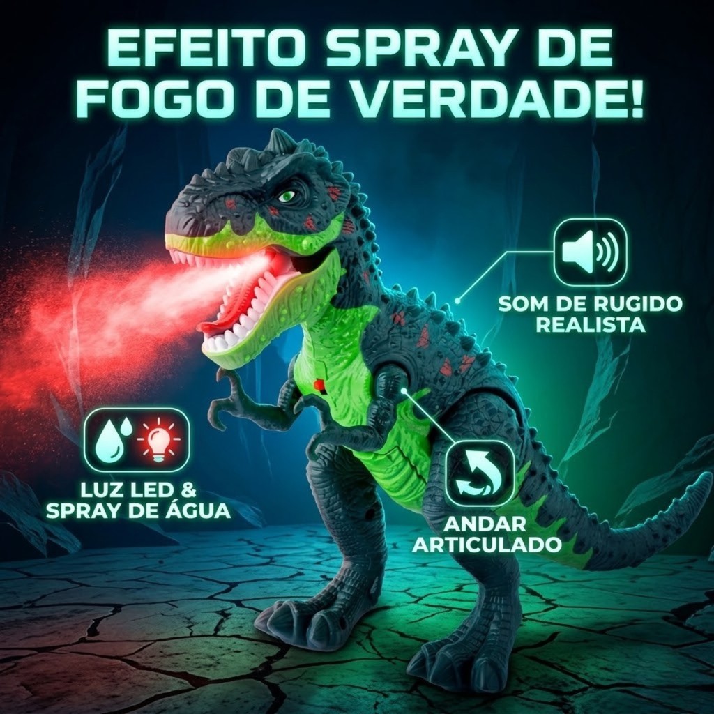 Dinossauro Rex Anda Solta Fumaça Luz E Som Brinquedo Realista Interativo Infantil Kizumba O Dinossauro T-Rex com Luz, Som e Fumaça é o brinquedo ideal para proporcionar uma experiência divertida e realista para as crianças. Com design impressionante e cheio de detalhes, ele anda sozinho, movimenta a cabeça e emite rugidos realistas, tornando a brincadeira ainda mais envolvente. Seu grande diferencial é a função de soltar fumaça (vapor de água), criando um efeito incrível que simula o “fogo” saindo da boca. Equipado com luzes LED e sons, o brinquedo estimula a imaginação, criatividade e coordenação motora. Fácil de usar, basta adicionar água para ativar a fumaça e iniciar a diversão. Indicado para crianças a partir de 3 anos, é uma excelente opção de presente e garante momentos inesquecíveis. Especificações Técnicas: • Tipo: Dinossauro T-Rex interativo • Funções: Anda, luz, som e solta fumaça • Efeito: Vapor de água simulando fogo • Movimento: Anda e movimenta cabeça e patas • Alimentação: Pilhas AA (não inclusas) • Material: Plástico resistente • Idade Recomendada: A partir de 3 anos Dimensões: • Comprimento: 33cm • Altura: 22cm • Largura: 12cm FAQ (Perguntas Frequentes): 1. Como funciona a fumaça? Basta colocar água no compartimento e o brinquedo libera vapor simulando fumaça. 2. Precisa de pilhas? Sim, funciona com pilhas AA (não inclusas). 3. Ele anda sozinho? Sim, o dinossauro se movimenta automaticamente. 4. É seguro para crianças? Sim, possui certificação e é indicado a partir de 3 anos. Conteúdo Da Embalagem: • 01 Dinossauro T-Rex • 01 Bisnaga para colocar água Importante: Valor Unitário Imagens Meramente Ilustrativas Não Nos Responsabilizamos Pelo Mau Uso Do Produto
