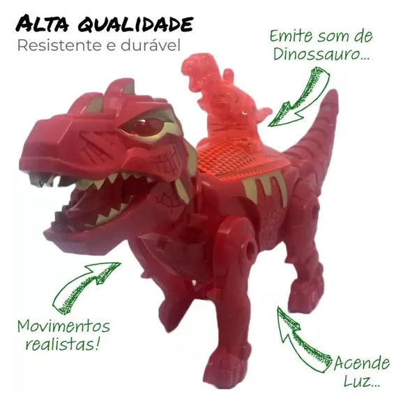 Dinossauro Brinquedo Dino T-Rex com Som e Toca música Brinquedo de Dinossauro que anda, emite som e te luz. Ótimo brinquedo para a criança se divertir com os sons do brinquedo e andar junto com o dinossauro! ESPECIFICAÇÕES: Cores: Vermelho e Verde Material: Plástico Alimentação: 2 pilhas AA A entrega não acompanha pilhas Idade recomendada: +3 anos