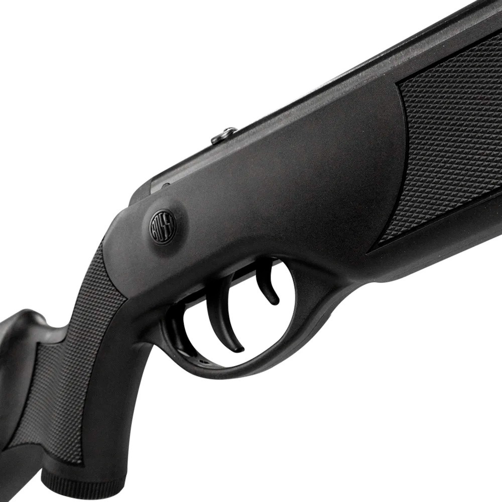 Esse mais novo lançamento, na verdade, é uma continuação do modelo Dione, considerada a Espingarda De Pressão mais tradicional e antiga da Rossi. A carabina mais querida ganha uma nova versão com alta tecnologia, desempenho e precisão, bora conferir? Esse equipamento é considerado um modelo de linha de entrada, porém é equipado com um grande diferencial se comparado ao modelo anterior. Conta com mola helicoidal, que desempenha uma velocidade média de 183 m/s, equivalente a aproximadamente 600 fps, com munição calibre 5,5 mm! Lembrando que essa é uma especificação técnica fornecida pelo fabricante do equipamento e pode sofrer alteração conforme a gramatura do chumbinho utilizado. Carabinas originais com mola helicoidal fornecem benefícios adicionais que melhoram a experiência do atirador, se comparada com a mola tradicional possui menor vibração e com isso tem-se um melhor agrupamento nos disparos. Sua coronha é tradicional do tipo Montecarlo ambidestra e confeccionada em polímero de alta densidade com elevação para apoio bochecha, além de detalhes texturizados ao longo do seu corpo que proporcionam uma maior firmeza durante os disparos. Conta com soleira emborrachada que de maneira geral aumenta o conforto durante a prática do Tiro Esportivo, pois reduz o impacto da carabina no ombro do atirador. Seu gatilho é confeccionado em polímero de alta densidade e possui ajustes, além disso, prezando sempre pela segurança do usuário, equipamento conta com Sistema de Trava de Segurança Manual, localizado no início a frente do gatilho. Ainda falando de suas especificações técnicas, seu cano é confeccionado em aço com acabamento em polímero e possui raias para melhor desempenho e precisão, tendo aproximadamente 432 mm de comprimento. Além disso, seu sistema de alavanca de armar é articulado. Possui alça de mira com regulagem horizontal e vertical com fibra óptica, que melhora significativamente a visado do atirador durante a prática do Tiro Esportivo, além de sua massa de mira fixa protegida por um túnel em metal que também possui fibra óptica. Como tradicionalmente em quase todas as Carabinas De Pressão, o modelo Dione Sport MH conta com trilho superior de 11 mm conhecido como Rabo de Andorinha, além de um retém luneta, onde é possível acoplar miras holográficas “Red Dot” ou “Lunetas”. Considerada uma carabina leve e extremamente versátil, possui peso de aproximadamente 2,38 kg e comprimento total de 1.070 mm. Em resumo, a Carabina Dione Sport MH é ideal para quem busca uma carabina de custo benefício, pois agrega precisão, potência e durabilidade a um único equipamento com um preço bem justo! Não perca tempo e garanta já sua Carabina De Pressão Dione Sport MH 5.5 mm - Rossi aqui na Dispropil! Especificações Técnicas: - Marca: Rossi - Origem: China - Referência fabricante: 1605518351 - Modelo: Carabina De Pressão Dione Sport MH 5.5 mm - Rossi - Material coronha: Polímero de alta densidade - Coronha – tipo Montecarlo - Cor: Preto - Soleira: Emborracha - Calibre: 5,5 mm (.22) - Velocidade Média: 183 m/s (600Fps) - Modo de disparo: Monotiro - Munição: Chumbo (Pellet) - Material do Bloco: Polímero - Trava de Segurança: Manual - Tipo do Gatilho: Polímero - Soleira emborrachada - Trilho 11 mm tipo rabo de andorinha - Regulagem de Gatilho: Sim - Comprimento do Cano: 432 mm - Comprimento total: 1.070 mm - Peso aproximado: 2,38 kg Itens Inclusos: - 01 Carabina De Pressão Dione Sport MH 5.5 mm - Rossi - 01 Chumbinho Exact Heavy 5.5mm 125un. - 01 Alvo de Papel 14x14 10 Unidades - 01 Luneta 4x20 11mm - 01 Pistola Airsoft Spring Vigor V-307 6mm - 01 BBs Plásticas Airsoft 0.12g 1000un.