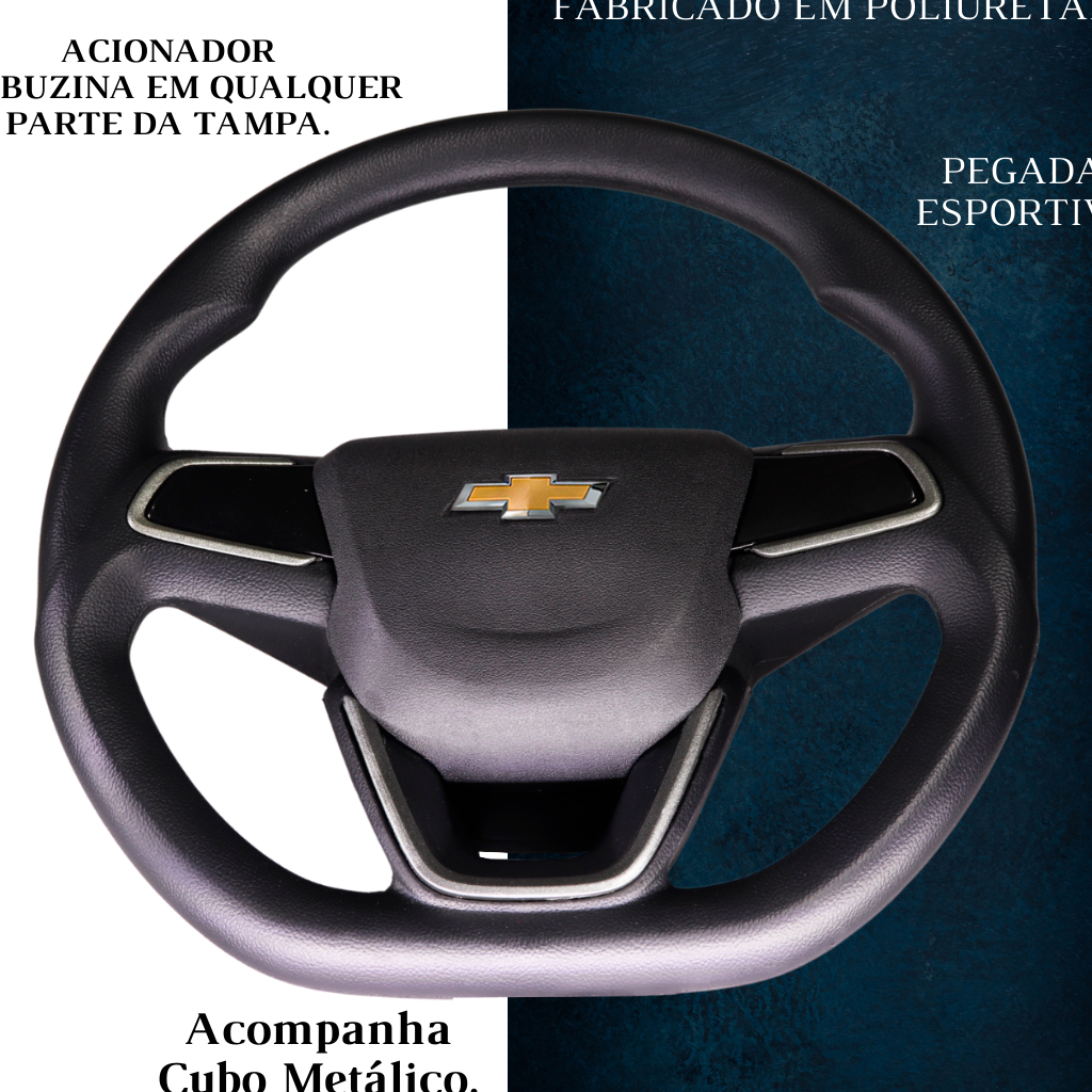 ESPECIFICAÇÃO TÉCNICA • Diâmetro de 370mm; • Profundidade de 120mm. MODELOS COMPATÍVEIS • CV125 • Corsa Joy • Premium • Maxx • Frente Montana • Meriva • Zafira • Montana • Sonic • Astra e Vectra 99 em diante • Corsa Hatch a partir de 2002 Caso não tenha encontrado o modelo do seu veículo neste anúncio, nos consulte. IMPORTANTE • Garantia de 3 Meses; • Somos FABRICANTES ESPECIALIZADOS no segmento automotivo, seguimos um processo rigoroso de fabricação e qualidade; • Entrega ágil e rápida após sua compra; • Enviamos todos os nossos volantes com CUBO ADAPTADOR; • Após a instalação, perde-se a função AIRBAG; • RECOMENDAMOS QUE A INSTALAÇÃO SEJA FEITA POR PROFISSIONAL ESPECIALIZADO. • Fabricamos volantes em POLIURETANO RESISTENTE; • Nossos volantes possuem similaridade ao original com acabamento texturizado e acionamento da buzina. Sua satisfação é nossa maior recompensa! Estamos à disposição e teremos o imenso prazer em atendê-lo!