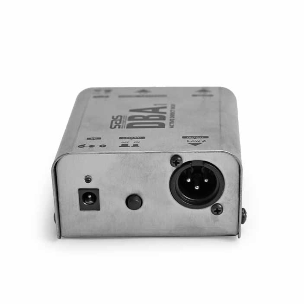 DIRECT BOX ATIVO “DBA1” diferente do modelo passivo o “DBA1” utiliza um transistor para fazer o balanceamento do sinal, por este motivo é necessário alimentação externa 9V ou utilizar o Phantom Power. • Resposta em frequência: 10Hz-40KHz +-0.5dB • Impedância de entrada: 400K Ohms • Impedância de saída: 100K Ohms • Correção de nível (Entrada – Saída): -20dB • Dimensões: 75mm x 90mm x 50mm • Peso: 226g