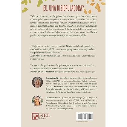 EU, UMA DISICPULADORA? Toda cristã é chamada a ser discípula de Cristo. Mas será que toda mulher é chamada a discipular? Neste guia prático, as queridas Renata Gandolfo e Luciana Sborowski desmistificam o discipulado feminino ao compartilhar seus ricos aprendizados de caminhada cristã ao lado de outras irmãs. Com um roteiro detalhado, as autoras conduzem a leitora a uma jornada de fundamentação bíblica, planejamento e execução do discipulado. Seja encorajada a deixar seus medos e dúvidas aos pés da cruz, arregaçar as mangas e começar seu próximo discipulado! 14x21cm168 páginas