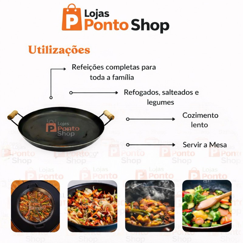 Disco Arado Grande Frigideira Para Bifes Tropeiro Aço + Ferro com alça de madeira