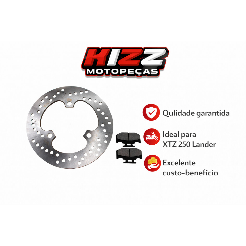 O Conjunto Traseiro GP7 (Disco + Pastilha) foi desenvolvido para proporcionar frenagem estável, resposta previsível e alta durabilidade para a sua Yamaha XTZ 250 Lander (modelos a partir de 2007). Ideal tanto para o uso urbano quanto para terrenos irregulares e trilhas leves, este kit entrega controle eficiente nas desacelerações, sensação confiável ao frear e desgaste uniforme ao longo do tempo. O disco é fabricado em aço carbono usinado, garantindo resistência ao empenamento e ótima dissipação de calor. As pastilhas possuem composto otimizado para atrito consistente, redução de ruídos e desgaste equilibrado, mantendo a performance mesmo em condições exigentes. Dados Técnicos (aproximados): Material do disco: Aço carbono usinado Diâmetro externo: 220 a 240 mm Espessura do disco: 3,5 a 4,5 mm Peso do disco: 0,75 a 0,95 kg Tipo da pastilha: Semimetálica reforçada Peso do par de pastilhas: 120 a 160 g Peso total do kit (disco + pastilha): 0,9 a 1,1 kg(Especificações podem variar conforme o lote de fabricação.) Compatibilidade: Yamaha XTZ 250 Lander – 2007 em diante Benefícios do Kit GP7: Frenagem estável e eficiente Menor vibração e ruído ao acionar o freio Excelente dissipação de calor Desgaste uniforme das pastilhas Encaixe perfeito para substituição do conjunto original Por que comprar na Kizz Moto Peças: Produto original e de qualidade comprovada Envio rápido e seguro para todo o Brasil Atendimento especializado para orientar a escolha correta Suporte dedicado antes e após a compra Garanta agora o Disco com Pastilha de Freio Traseiro GP7 para XTZ 250 Lander e tenha frenagem mais eficiente, durabilidade prolongada e maior controle de pilotagem. Imagens Meramente Ilustrativas