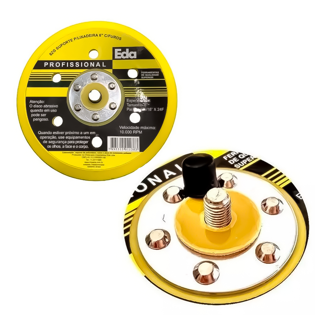 COMERCIAL VIPASA DISTRIBUIDORA. DISCO DE BORRACHA 6POL. C/ VELCRO P/ LIXADEIRA 6 FUROS (8ZG) / EDA . Descrição Com mais de 30 anos no mercado, a Mendon Car tem a missão de trazer para os seus clientes a melhor experiência do Mercado Livre. Nossos valores são Compromisso e Respeito com o consumidor, visando sempre à satisfação e garantindo que o nosso relacionamento seja de confiança! Linha de ferramentas EDA PROFISSIONAL, feita para você que tem bom gosto e procura sempre o melhor para seu trabalho! Ideal para lixadeiras ou politrizes, o Disco De Suporte Para Lixadeiras Eda 8Zg possui velcro para fixação dos discos, o que implica em um bom rendimento e alta durabilidade ao distribuir a força do lixamento por igual, e reduzir o impacto no operador. Características: • Suporte Disco Rígido Com Velcro • Para Lixadeira 6'' • Com 6 Furos • Diâmetro: 6'' • Parafuso: 5/16'' x 24F • Velocidade Máxima: 10.000 rpm • Com Velcro com 6 furos • Peso: 125g • Comprimento: 14,5 cm • Largura: 3 cm • Altura: 14,5 cm Suporte para lixadeira ou politriz para prender lixas. Tamanho 6" (150 mm). Com 6 furos. Velocidade máxima 10.000 RPM. O público-alvo deste produto são profissionais da área de marcenaria, carpintaria e trabalhos manuais que utilizam lixadeiras 6 furos. Também pode atrair entusiastas e amadores que buscam ferramentas de qualidade para projetos de bricolagem. Vamos lá! Público-alvo: O público-alvo deste produto são profissionais da área de marcenaria, carpintaria e trabalhos manuais que utilizam lixadeiras 6 furos. Também pode atrair entusiastas e amadores que buscam ferramentas de qualidade para projetos de bricolagem. Palavras-chave mis buscadas: Disco de borracha Lixadeira 6 furos Disco com Velcro EDA 6 polegadas Ferramentas para marcenaria Acessório para lixadeira Disco abrasivo Ferramentas manuais Acessório EDA Disco de lixa 6 furos resistente Velcro para lixadeira EDA Ferramenta de acabamento manual Acessório para polimento em madeira Disco abrasivo para trabalhos precisos Disco de borracha resistente Acessório para lixadeira 6 furos Qualidade EDA Disco abrasivo profissional Ferramentas manuais de precisão Velcro durável Acabamento em madeira Polimento eficiente Ferramenta para marcenaria Desempenho superior em lixamento Durável Resistente Preciso Eficiente Versátil Profissional Confiável Ergonômico Prático Inovador Benefícios do produto: Facilita o trabalho de lixamento Proporciona acabamento preciso Aumenta a durabilidade do disco Versatilidade em diferentes superfícies Desempenho profissional Fácil instalação com sistema de Velcro Ergonomia para uso prolongado Resistência a desgastes Ideal para projetos de marcenaria Qualidade reconhecida da marca EDA Artefato Item Utensílio Ferramenta Equipamento Principais soluções: Facilita o processo de lixamento, economizando tempo e esforço. Proporciona um acabamento preciso, atendendo a padrões profissionais. Aumenta a durabilidade e eficácia do disco, garantindo resultados consistentes em diversos projetos. COMERCIAL VIPASA DISTRIBUIDORA.