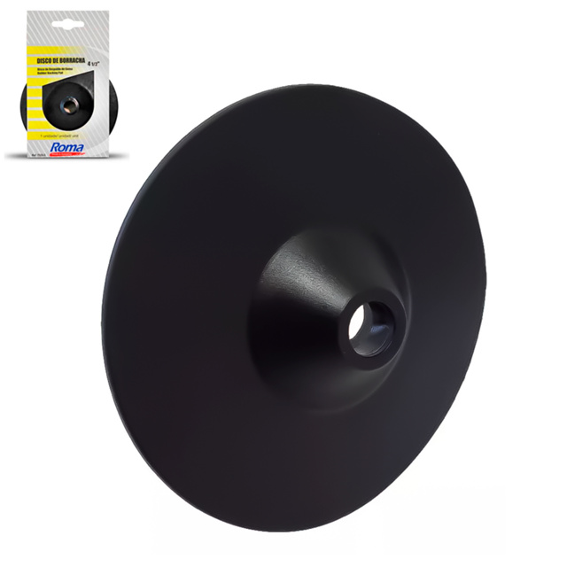 COMERCIAL VIPASA DISTRIBUIDORA. DISCO DE BORRACHA 4.1/2POL. FLEXIVEL . Disco de Borracha Roma e uma disco de borracha injetada e flexível ideal para uso com lixadeira, esmerilhadeiras e Politriz. Disco de Borracha possui suporte de lixa de 4.1/2”. Disco de Borracha Roma é produzida em borracha resistente, proporcionando maior durabilidade ao produto e segurança no uso. Disco de Borracha Roma possui arruela metálica com furo central. Como utilizar/funciona o Disco de Borracha 4.1/2” Preto – Roma Disco de Borracha Roma é indicada para máquinas angulares rotativas de acionamento elétrico ou pneumático. Características técnicas do Disco de Borracha 4.1/2” Preto – Roma Tamanho: 4.1/2”. O disco de borracha flexível de 4.1/2 polegadas para lixadeira é um acessório utilizado em conjunto com uma lixadeira para diversos propósitos de preparação e acabamento de superfícies. Flexibilidade e Adaptabilidade: O disco é fabricado em borracha flexível, o que lhe confere a capacidade de se adaptar a diferentes contornos e superfícies, tornando-o ideal para lixamento em áreas curvas, irregulares ou de difícil acesso. Compatibilidade: Projetado para ser utilizado com lixadeiras de disco de 4.1/2 polegadas (aproximadamente 115mm de diâmetro), comumente encontradas em ferramentas elétricas como esmerilhadeiras ou politrizes. Fixação: O disco é fixado à lixadeira por meio de um sistema de fixação de gancho e laço (velcro), que permite uma instalação rápida e segura, além de possibilitar a troca rápida entre diferentes discos abrasivos. Uso com Discos Abrasivos: O disco de borracha flexível é frequentemente utilizado como suporte para discos abrasivos, como discos de lixa ou discos de polimento, os quais são fixados à superfície do disco de borracha. Absorção de Impactos: A flexibilidade da borracha proporciona uma absorção de impactos durante o lixamento, o que contribui para um trabalho mais suave e uniforme, reduzindo a probabilidade de danos à superfície lixada. Versatilidade de Uso: Pode ser utilizado em uma variedade de materiais, como madeira, metal, plástico, entre outros, e em diversas aplicações, incluindo remoção de tinta, nivelamento de superfícies, preparação para pintura, entre outros. Durabilidade: Fabricado com materiais de alta qualidade, o disco de borracha flexível é resistente ao desgaste e projetado para suportar o uso prolongado em condições adversas. O disco de borracha flexível de 4.1/2 polegadas para lixadeira é um acessório versátil e eficaz que proporciona suporte e flexibilidade durante o processo de lixamento, contribuindo para resultados de alta qualidade em uma variedade de aplicações de acabamento de superfícies. COMERCIAL VIPASA DISTRIBUIDORA.