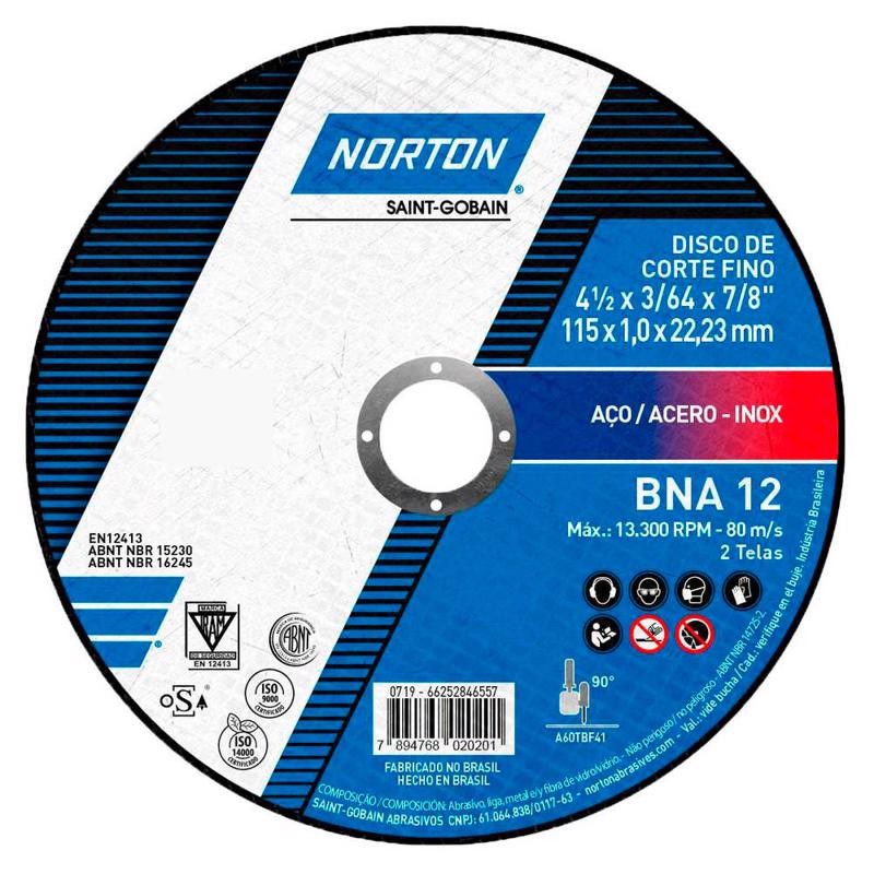 Disco de Corte BNA 12 para Metal e Inox 4.1/2 POL Kit com 25 Unidades NORTON