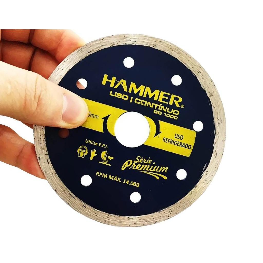 Distribuído por Ismafer Ferramentas - Este anúncio acompanha : * 1 Disco Diamantado Liso 110 X 20 mm GYDD1000 - Descrição : * Disco de corte diamantado liso 110 x 20 mm * Indicado para segurar peças planas e cilíndricas, cortar e desencapar fios * Ideal para serrar mármore, granito, azulejos, cerâmicas e etc. - Informações Técnicas : * Marca : Hammer * Modelo : DD 1000 * Diâmetro externo do disco de corte diamantado : 110 mm * Diâmetro do furo do disco de corte diamantado : 20 mm * Espessura do corpo do disco de corte diamantado : 1,2 mm * Tipo de corte do disco de corte diamantado : Refrigerado * Espessura da camada de diamante : 1,8 mm * Altura da camada de diamante : 5,0 mm * Perfil do corte : Anel contínuo * Rotação máxima ( rpm ) : 14000 rpm * Peso bruto : 85g - Sku : 16631 Distribuído por Ismafer Ferramentas