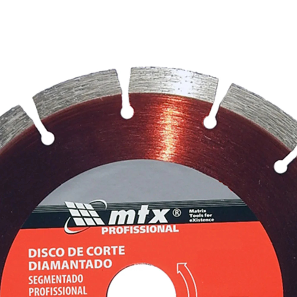 COMERCIAL VIPASA DISTRIBUIDORA Disco De Corte Diamantado Segmentado 7Pol. 180mm X 25,4mm Profissional Serra Mármore Circular Disco De Corte Diamantado Segmentado 7Pol. 180mm X 25,4mm Profissional Serra Mármore - Mtx Indicado para cortar mármore, granito, concreto, tijolo, telhas, alvenaria e pedras. Os discos de corte a seco, quando refrigerados proporcionam um melhor rendimento. Proporciona qualidade, produtividade e maior profundidade de corte. Acompanha bucha de reduz ação de 25,4 mm para 22,2 mm. Diâmetro externo do disco de corte diamantado:180 mm Diâmetro do furo do disco de corte diamantado:25,4 mm Tipo de corte do disco de corte diamantado: A seco Perfil do corte: Segmentado Altura do segmento diamantado:7 mm Espessura do segmento diamantado:2,2 mm Rotação máxima (rpm):8400 rpm COMERCIAL VIPASA DISTRIBUIDORA