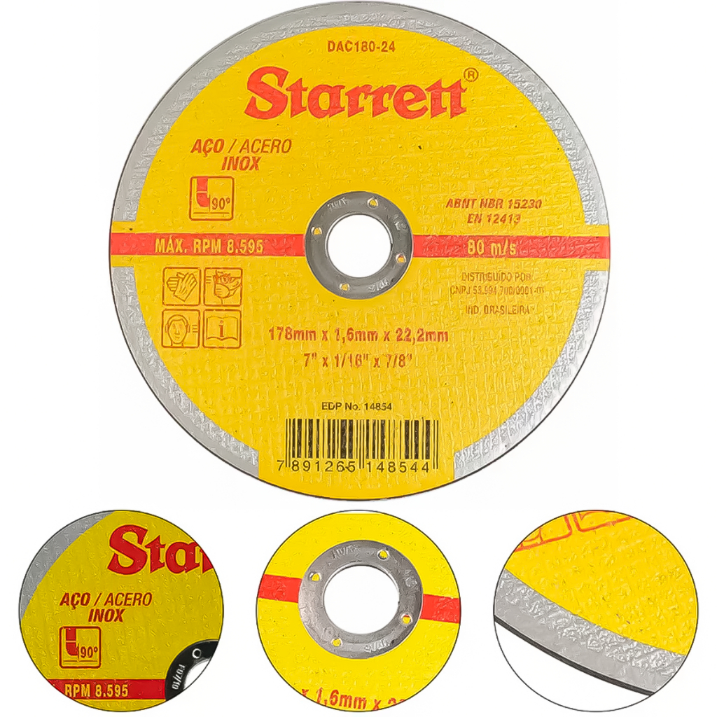 Disco De Corte Inox 7Pol. Ferro Chapas Metalon (178mmX1,6mmX22mm) DAC180-24 Profissional - STARRET