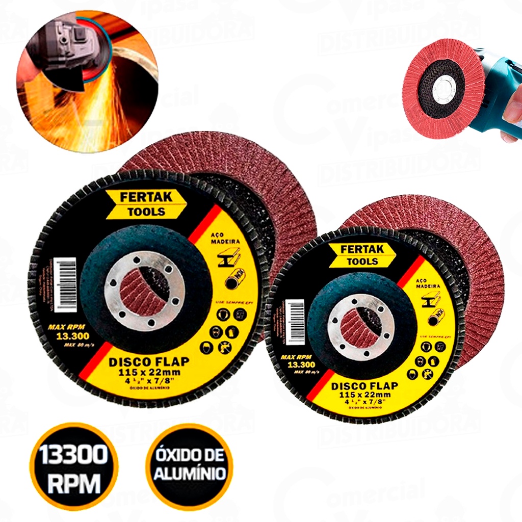 COMERCIAL VIPASA DISTRIBUIDORA. Disco De Desbaste Flap 4.1/2 Grão 40 - 60 - 80 - 120 | 1 Unidade Várias Marcas Medidas Disco Flap para acabamento, desbaste de perfis e superfícies em aço carbono, inox, metais ferrosos e não ferrosos, madeira e gesso. Para usuários que buscam um acabamento de forma rápida e eficiente. Fáceis de utilizar, otimizam tempo e trabalho. Informações Técnicas Grana :: Grão 60 / 80 ou 120 ( FICA A SUA ESCOLHA O GRÃO) Dimensões e Peso do Produto Tamanho 4.1/2" - 115mm Fabricante Modelo Reto O Disco de Desbaste Flap 4.1/2" é uma ferramenta abrasiva versátil e eficaz, utilizada em processos de desbaste e acabamento em superfícies metálicas, madeiras, entre outros materiais. Disponível em várias granulometrias, como grão 40, 60, 80 e 120, este disco atende a diferentes necessidades de trabalho, desde o desbaste mais agressivo até o acabamento mais fino. Aqui estão os principais detalhes: Diâmetro de 4.1/2" (115mm): Compatível com a maioria das esmerilhadeiras angulares, este disco possui o tamanho ideal para trabalhos precisos e eficientes em superfícies de diferentes tamanhos. Granulometrias Variadas: Disponível nas granulometrias 40, 60, 80 e 120, o disco oferece opções para diversos tipos de aplicações: Grão 40: Ideal para desbastes mais agressivos, remoção rápida de material e preparação de superfícies. Grão 60: Para um desbaste intermediário, combinando remoção de material com um início de acabamento. Grão 80: Adequado para lixamento e acabamento mais refinado, removendo pequenas imperfeições. Grão 120: Perfeito para acabamentos finos e alisamento final das superfícies, deixando-as prontas para pintura ou outras etapas de acabamento. Material Abrasivo: Composto por lâminas de lixa de alta qualidade, o disco flap oferece durabilidade e desempenho superior, proporcionando um desgaste uniforme e uma vida útil prolongada. Aplicações: Ideal para uso em metalurgia, serralherias, marcenarias, oficinas mecânicas e em trabalhos de manutenção. Pode ser utilizado para desbaste de soldas, remoção de ferrugem, nivelamento de superfícies e acabamento em materiais diversos. Marcas Variadas: Este disco está disponível em diferentes marcas renomadas, garantindo a qualidade e a confiança necessárias para trabalhos profissionais e amadores. Este Disco de Desbaste Flap é uma ferramenta essencial para quem busca eficiência e versatilidade nos processos de desbaste e acabamento, oferecendo resultados excelentes em diversas aplicações. COMERCIAL VIPASA DISTRIBUIDORA.
