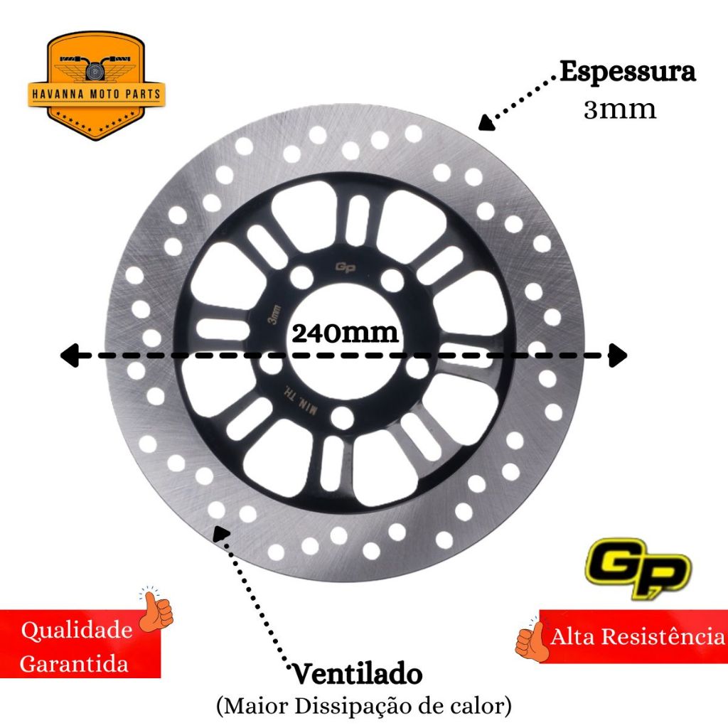 Disco de Freio Dianteiro + Pastilha Compatível com: HONDA CG 160 TITAN 2018 (Combi Brake) CG 160 TITAN 2019 (Combi Brake) CG 160 TITAN 2020 (Combi Brake) CG 160 TITAN 2021 (Combi Brake) CG 160 TITAN 2022 (Combi Brake) CG 160 TITAN 2023 (Combi Brake) CG 160 TITAN 2024 (Combi Brake) CG 160 FAN 2018 (Combi Brake) CG 160 FAN 2019 (Combi Brake) CG 160 FAN 2020 (Combi Brake) CG 160 FAN 2021 (Combi Brake) CG 160 FAN 2022 (Combi Brake) CG 160 FAN 2023 (Combi Brake) CG 160 FAN 2024 (Combi Brake) CG 160 CARGO 2018 (Combi Brake) CG 160 CARGO 2019 (Combi Brake) CG 160 CARGO 2020 (Combi Brake) CG 160 CARGO 2021 (Combi Brake) CG 160 CARGO 2022 (Combi Brake) CG 160 CARGO 2023 (Combi Brake) CG 160 CARGO 2024 (Combi Brake) Conteúdo da Embalagem: 01 Disco de Freio Dianteiro GP7 01 Par de Pastilhas de Freio Dianteira Diafrag Urban Tech (orgânica) Características do Disco de Freio: - Produzidos em Aço Carbono de alta resistência ao desgaste; - Excelente frenagem e equilíbrio; - Discos ventilados que evitam o superaquecimento; - Frenagem mais complexa; - Aumenta a frenagem mesmo em terrenos úmidos; - Bom funcionamento do sistema de freios; - Qualidade Original; Especificações Pastilha: - Modelo: URBAN TECH ORGANICA - Material: ferro / lona - Produzido com melhores equipamentos garantindo segurança e durabilidade. - Oferecendo o melhor custo beneficio, unindo qualidade e eficiência na sua utilidade. - Possui medidas originais - Melhor dissipação de calor e atrito com o disco de freio - Ideal Para Reposição - Maior segurança ao motociclista - Alta Qualidade E Resistência Importante Recomendamos que a instalação seja feita por profissional especializado e não nos responsabilizamos pelo mau uso do produto. Verifique, antes da compra, se as medidas das pastilhas são compatíveis com a da sua moto.