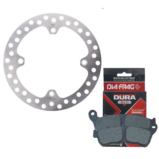 Disco de Freio Dianteiro + Pastilha de Freio Dianteira Compativel Com: HONDA XRE 300 2009 (Com Abs) XRE 300 2010 (Com Abs) XRE 300 2011 (Com Abs) XRE 300 2012 (Com Abs) XRE 300 2013 (Com Abs) XRE 300 2014 (Com Abs) XRE 300 2015 (Com Abs) XRE 300 2016 (Com Abs) XRE 300 2017 (Com Abs) XRE 300 2018 (Com Abs) Conteúdo da Embalagem: 01 Disco de Freio Dianteiro GP7 01 Par de Pastilhas de Freio DIAFRAG Dura Tech (semimetálica) Características do Disco de Freio: - Produzidos em Aço Carbono de alta resistência ao desgaste; - Excelente frenagem e equilíbrio; - Discos ventilados que evitam o superaquecimento; - Frenagem mais complexa; - Aumenta a frenagem mesmo em terrenos úmidos; - Bom funcionamento do sistema de freios; - Qualidade Original; Características das Pastilhas: - Modelo:DURA TECH SEMIMETÁLICA - Marca: DIAFRAG - Codigo de Conversão: COBREQ N-964 - Quantidade Embalagem: 1 Jogo para 1 roda - Material: ferro / lona - Produzido com melhores equipamentos garantindo segurança e durabilidade. - Oferecendo o melhor custo beneficio, unindo qualidade e eficiência na sua utilidade Importante:Recomendamos que a instalação seja feita por profissional especializado e não nos responsabilizamos pelo mau uso do produto.
