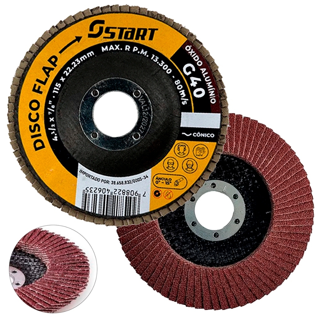 Disco De Lixa Flap 4.1/2 Grão 40 Para Lixadeira Kit Com 5 Peças