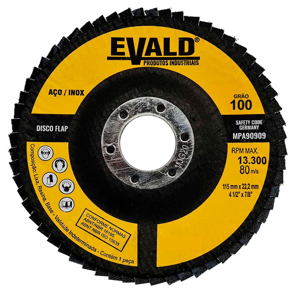 Disco de Lixa Flap 4.1/2 POL 115 MM Aço Inox Grão 100 Kit com 10 Unidades EVALD EVALD
