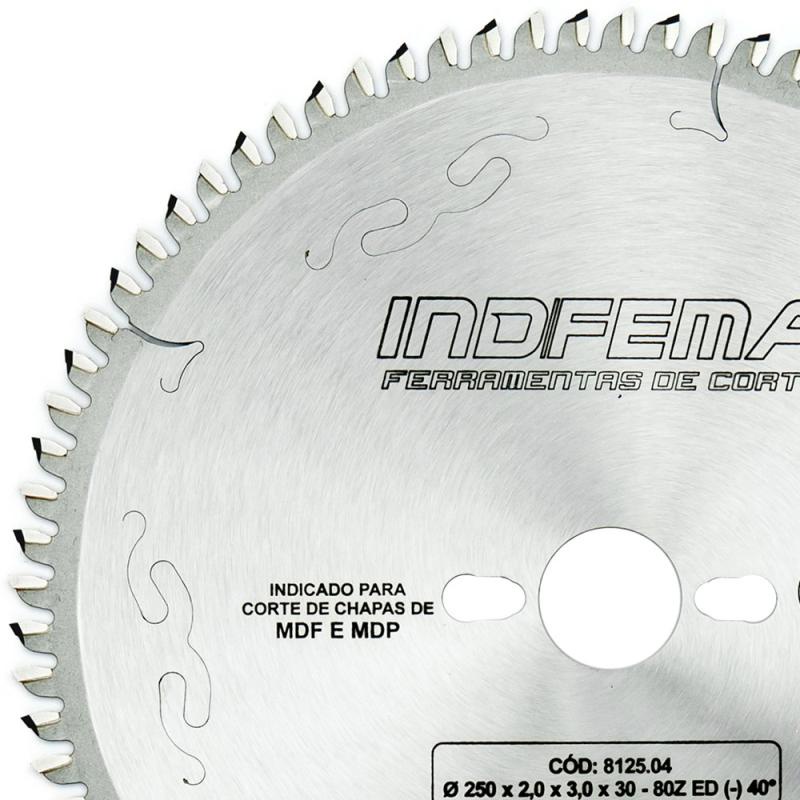 Disco de Serra Circular de Widea HW 10 POL 250 MM 80 Dentes p/ MDF Baixo Ruído ED 40° 8125.04 INDFEM