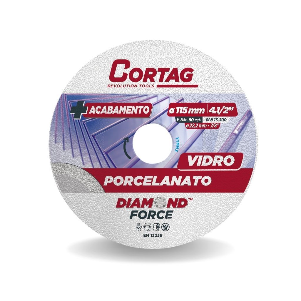 DISCO DIAMANTADO PARA PORCELANATO/VIDRO 115mm - Cortag Precisão incomparável para cortes delicados em porcelanato e vidro! Cortes impecáveis: Ideal para cortes precisos em porcelanato, vidro e outros materiais delicados, garantindo um acabamento limpo e sem lascas. Tecnologia diamantada: Oferece máxima durabilidade e resistência, mesmo em usos frequentes e prolongados. Versatilidade premium: Perfeito para uso em reformas, construção e projetos de acabamento fino. Compatibilidade prática: Compatível com esmerilhadeiras e ferramentas que utilizam discos de 115mm. Por que escolher o Disco Diamantado Porcelanato/Vidro da Cortag?Acabamento profissional: Evita lascas e irregularidades, ideal para trabalhos que exigem alta precisão.Economia de tempo: Tecnologia avançada que proporciona cortes rápidos e eficientes.Durabilidade superior: Reduz a necessidade de trocas frequentes, garantindo maior economia a longo prazo. Perguntas Frequentes:1. Este disco é indicado apenas para vidro?Não! Ele foi desenvolvido para cortes em vidro, porcelanato e outros materiais delicados que requerem precisão.2. Funciona com qualquer esmerilhadeira?Sim, desde que a ferramenta seja compatível com discos de 115mm.3. Este disco corta materiais espessos?É ideal para materiais finos e delicados. Para materiais espessos, recomendamos discos específicos. Frete rápido + Qualidade Cortag garantida!Adquira o Disco Diamantado Porcelanato/Vidro 115mm e transforme seus projetos com cortes precisos e acabamentos perfeitos. Clique em "Adicionar ao Carrinho" e tenha a ferramenta ideal para porcelanato e vidro ao seu alcance!