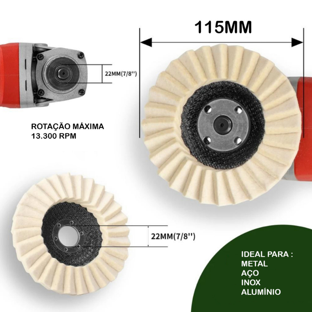 Disco Flap Feltro para Polimento 4.1/2 Pol. Aço Inox Alumínio Metais