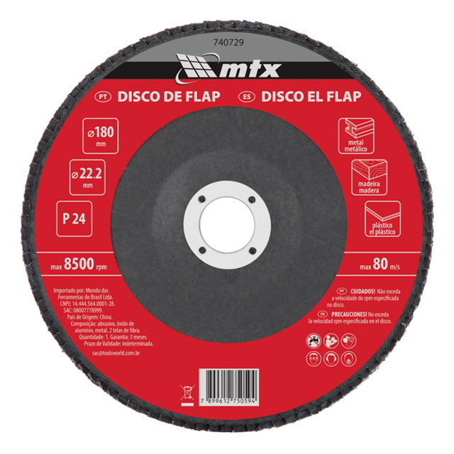 | DISCO FLAP, GRAO 24, 180 X 22,2 MM, 1PC // MTX este produto | R$ 16,70 | 9% | 5.0/5 | — |