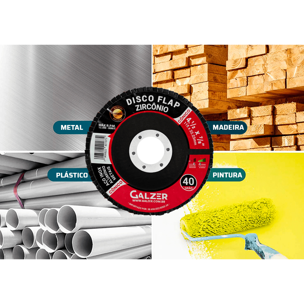Disco Flap Zircônio Premium Reto conico 4.1/2 Grão 40 Galzer