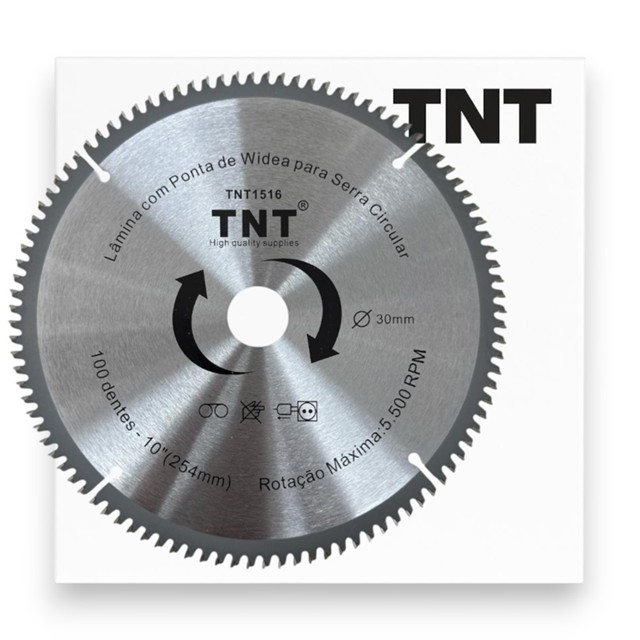 Disco Serra Circular Corta Alumínio Madeira Laminada 10" 254mm 100 Dentes Marca TNT DENTES DE WÍDEA, Acabamento excepcionalmente liso LÂMINA DE AÇO TEMPERADO E ENDURECIDO, Cortes precisos produzindo encaixes perfeitos DENTES FINOS, Reduzem estilhaços e oferecem facilidade no corte POSSIBILIDADE DE USO EM OUTROS EQUIPAMENTOS que não sejam máquinas portáteis, como por exemplo máquinas seccionadoras, esquadrejadeiras e serras de bancada Furo padrão de 30mm acompanha bucha de redução de ,3/4 (19mm) e 01" (25mm) Aplicação Aluminio e Madeira Laminada Diametro do Disco 254mm / 10" 100 Dentes de Wídea Trapezoidais/Retos Angulo de Corte -3º Espessura Lamina 2,2mm Espessura do Dente 3,2mm Similar serras Makisiwa, Dewalt, Bosch, Makita, Black e Decker, Vonder, DWT, Tramontina etc