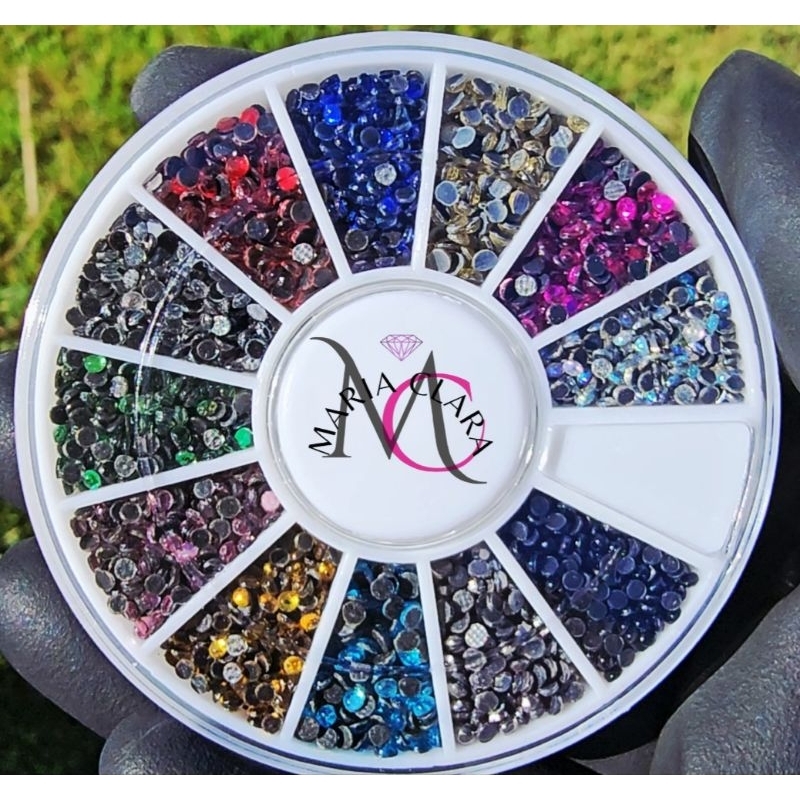 Disco Pedrarias para unhas Strass 1,8 e 2mm 12 divisórias joias e nail art acessórios make artesanto colagem termocolant