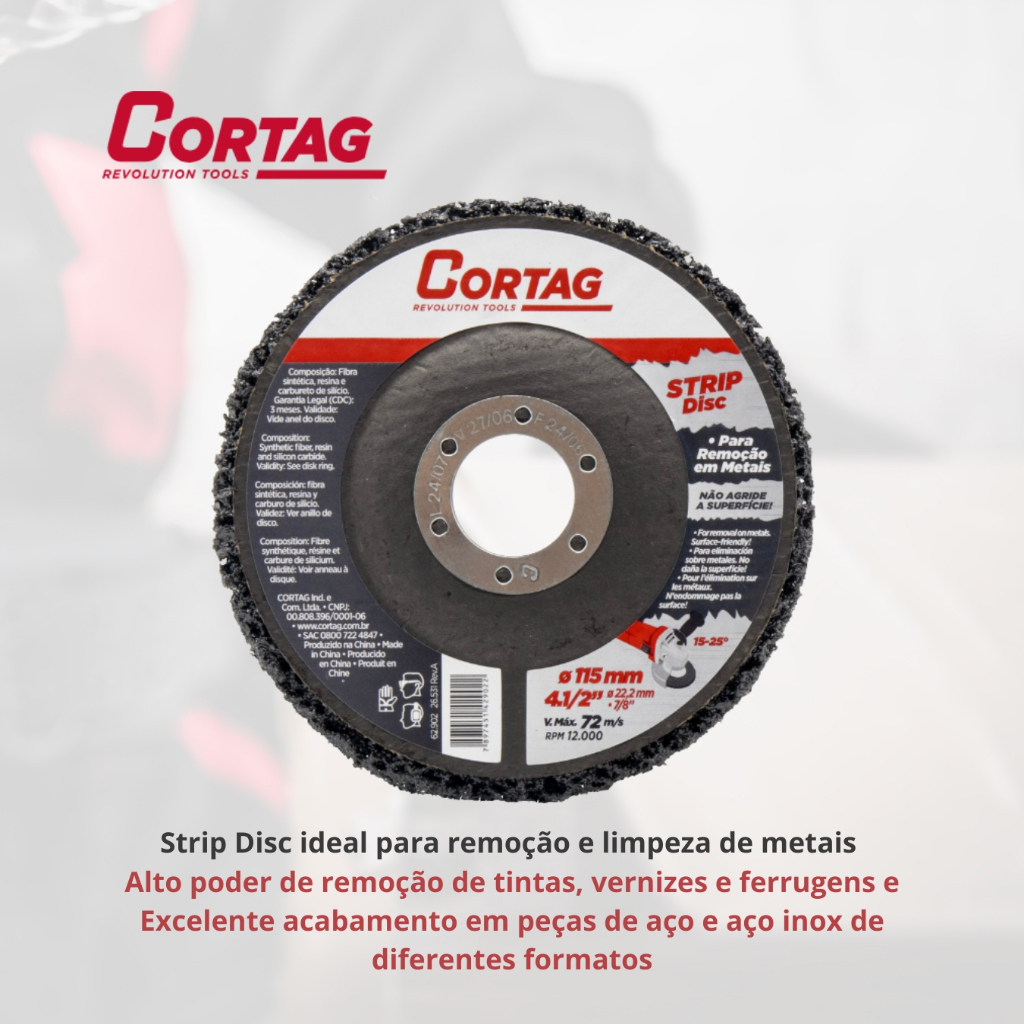 Disco Strip para Remoção em Metais 115mm Cortag – Desempenho Imbatível para Remoção e Acabamento Profissional! Remoção Eficiente de Rebarbas e Imperfeições em Metais!O Disco Strip para Remoção em Metais 115mm Cortag é a escolha perfeita para quem precisa de cortes e acabamentos rápidos e de alta qualidade em metais. Ideal para remover rebarbas, oxidação, tintas e imperfeições, esse disco oferece um desempenho superior, deixando um acabamento profissional em minutos. Durabilidade e Resistência para Trabalhos Pesados!Fabricado com materiais de alta qualidade, o disco Cortag é extremamente resistente ao desgaste, oferecendo uma vida útil prolongada, mesmo em tarefas mais exigentes. Seu design robusto permite um trabalho mais rápido e duradouro, sem perder a eficiência. "Será que ele vai durar o suficiente para o meu trabalho?" Alta Durabilidade!A tecnologia de fabricação e os materiais de qualidade garantem que o disco Cortag mantenha sua eficiência por mais tempo. Mesmo em uso constante e em trabalhos pesados, ele não perde o desempenho, garantindo maior economia e menos trocas de disco. "Será que ele é realmente eficaz para remoção de materiais?" Desempenho Imbatível!Com sua estrutura especial, o Disco Strip Cortag é perfeito para a remoção eficiente de rebarbas e camadas indesejadas de materiais metálicos, como ferrugem, tinta, sujeiras e imperfeições, sem danificar o metal. O acabamento fica impecável, pronto para o próximo passo do trabalho. "Ele é compatível com minha ferramenta?" Compatibilidade Garantida!Com 115mm de diâmetro, o disco Cortag é compatível com a maioria das esmerilhadeiras e lixadeiras do mercado. Não se preocupe com a compatibilidade, você pode usar com confiança em sua ferramenta sem problemas. Compra Segura e Garantia de Satisfação!Adquira o Disco Strip para Remoção em Metais 115mm Cortag agora e experimente a diferença em seus trabalhos com metais! Garantimos qualidade, desempenho e satisfação. Se não ficar totalmente satisfeito, nossa política de devolução está à sua disposição para total segurança na compra.