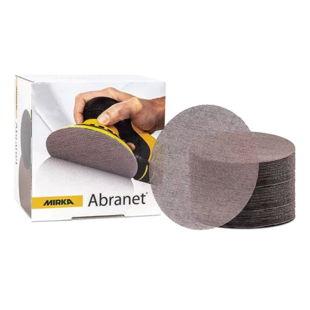 Kit com oito unidades de disco de lixa telado Abranet® foi o primeiro produto a utilizar o conceito inovador e patenteado Mirka de lixa em “tela”, livre de pó. Contendo milhares de pequenos orifícios, permitem a eficaz sucção de poeira e outras partículas sem danificar a superfície abrasiva. O resultado é um padrão de lixamento muito uniforme com uma superfície perfeitamente lisa, minimizando a quantidade de poeira no ar, melhorando o ambiente de trabalho. Abranet® foi desenvolvido para o lixamento de primers, revestimentos, compósitos e muitos outros materiais.