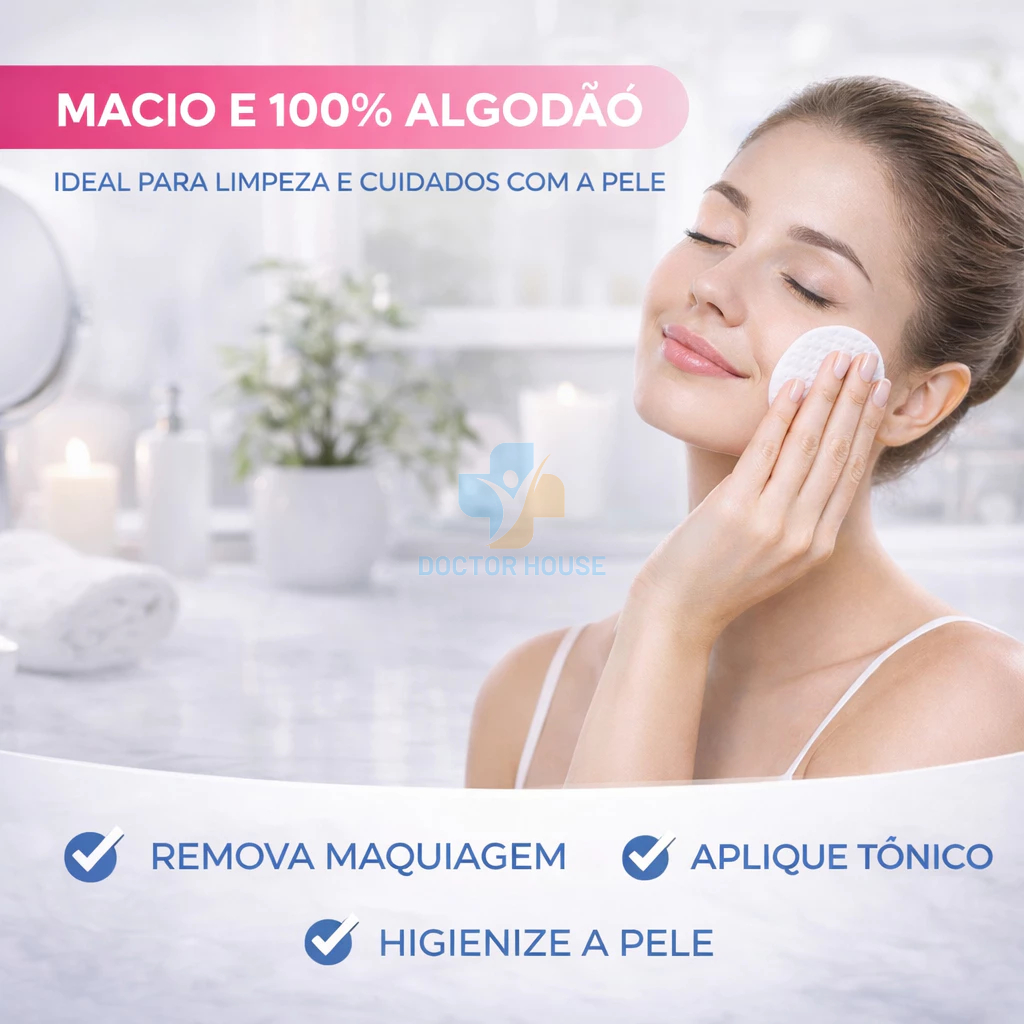 Discos De Algodão Dupla 300Un Face Limpeza Remove Maquiagem