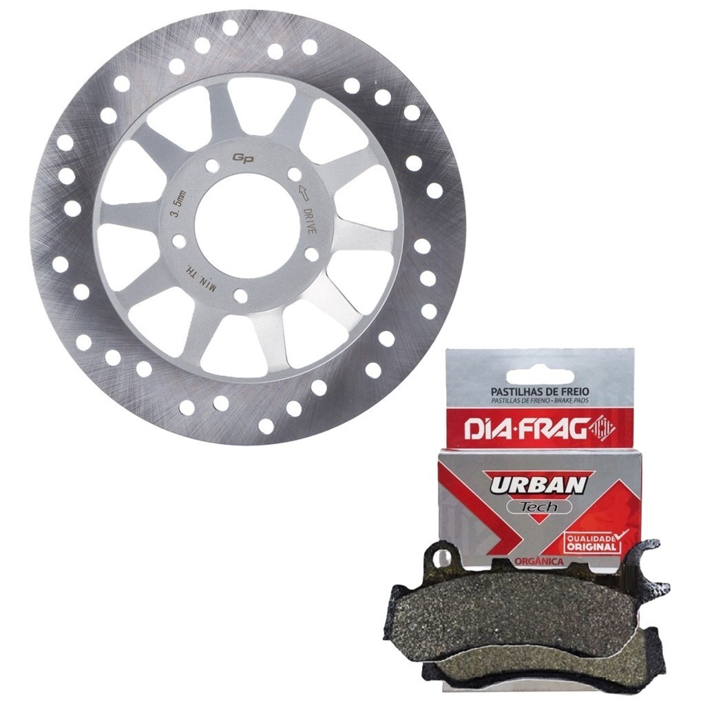 ** Compatível com modelos Combi Brake Par Discos de Freio + Pastilhas Compativel com: HONDA NXR 160 BROS 2018 (Combi Brake) NXR 160 BROS 2019 (Combi Brake) NXR 160 BROS 2020 (Combi Brake) NXR 160 BROS 2021 (Combi Brake) NXR 160 BROS 2022 (Combi Brake) NXR 160 BROS 2023 (Combi Brake) NXR 160 BROS 2024 (Combi Brake) Conteúdo da Embalagem: 01 Disco de Freio Dianteiro GP7 01 Disco de Freio Traseiro GP7 01 Par de Pastilhas de Freio Dianteira DIAFRAG Urban Tech (orgânica) 01 Par de Pastilhas de Freio Traseira DIAFRAG Urban Tech (orgânica) Características dos Discos de Freio: - Produzidos em Aço Carbono de alta resistência ao desgaste; - Excelente frenagem e equilíbrio; - Discos ventilados que evitam o superaquecimento; - Frenagem mais complexa; - Aumenta a frenagem mesmo em terrenos úmidos; - Bom funcionamento do sistema de freios; - Qualidade Original; Especificações Técnicas das Pastilhas: - Proporciona maior segurança e eficiência - Têm as dimensões exatas dos modelos originais - Pintura especial em powder coat para evitar corrosão - Maior vida útil e desgaste uniforme - Eficiência dos freios independente da temperatura - Peças feitas em aço com pintura especial em powder coat para evitar a corrosão- Plaquetas estampadas em fineblanking para corte preciso- Melhor dissipação de calor e atrito com o disco de freio Importante:Recomendamos que a instalação seja feita por profissional especializado e não nos responsabilizamos pelo mau uso do produto.