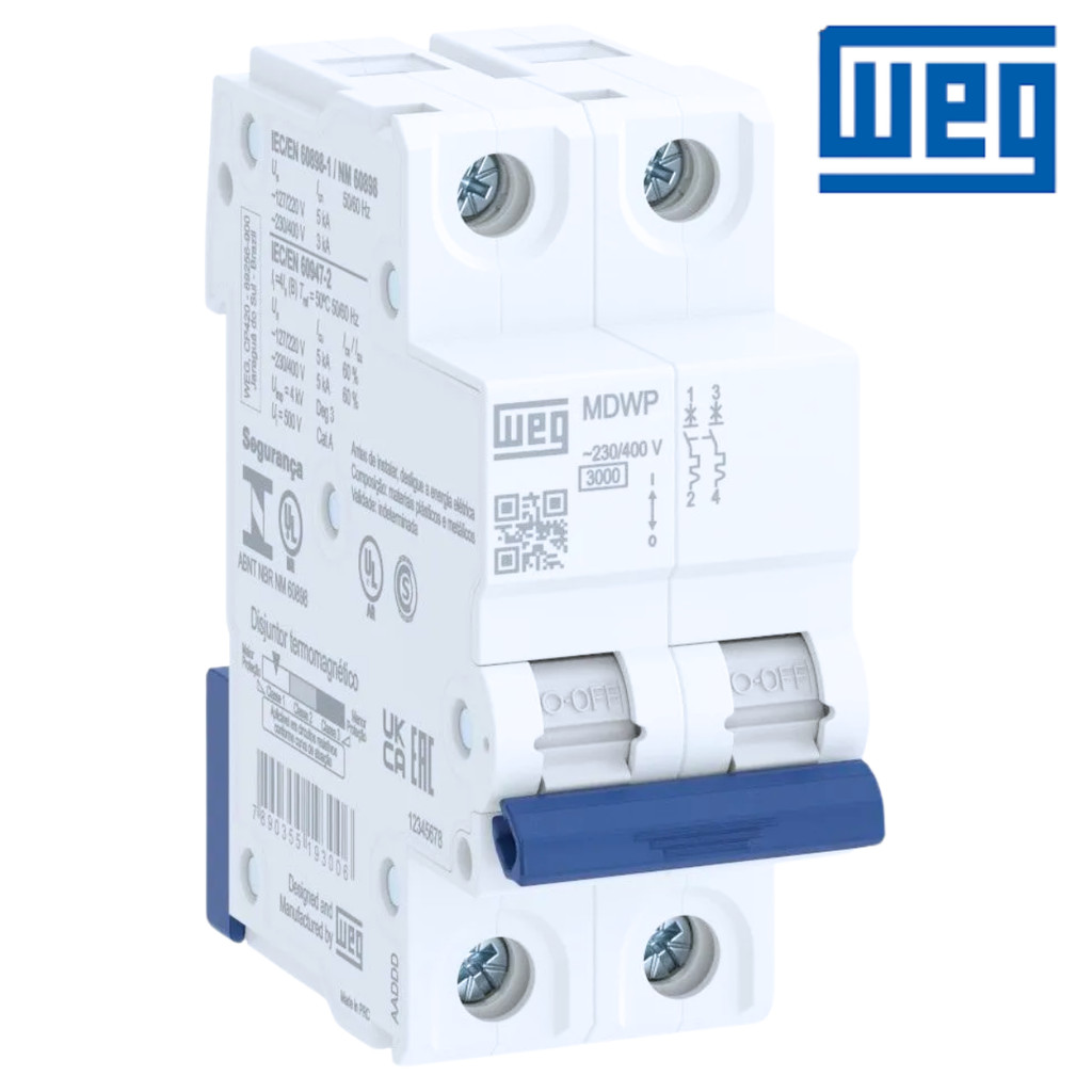 Disjuntor Bipolar 2 Polos 10A 16A 20A 25A 32A 40A 50A 63A WEG