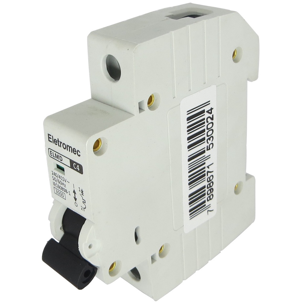 Codigo Interno: 33447700033 Codigo Fabricante: ELMD-1C4 Codigo Referencia: 33447700033 Disjuntor Mini Din 1 Polo 4A Curva C 3Ka 230/400V CARACTERISTICAS Os minidisjuntores ELETROMEC sao equipamentos de alta tecnologia que protegem fios e cabos eletricos contra curto-circuitos e sobrecargas de energia, proporcionando aplicacoes seguras e economicas em instalacoes eletricas residenciais, comerciais e industriais. Possuem contatos especiais de prata que oferecem garantia de seguranca contra soldagem. Alem disto sao produtos de disparo livre, isto e, podem disparar mesmo com a alavanca de acionamento travada na posicao liga. ESPECIFICACOES TECNICAS: Produto: Disjuntor Mini Padrao: Din Polos: 1 Corrente (a): 4 A Curva: Curva C Protecao: Termomagnetico Capacidade Interrupcao: 3ka Tensao(v): 230/400V Frequencia (hz): 50/60hz Marca: Eletromec Referencia: ELMD-1C4 MEDIDAS DA EMBALAGEM UNITARIA: Altura: 10 CM Largura: 3 CM Profundidade: 6 CM Peso: 115g GARANTIA DO FORNECEDOR: 3 Meses.