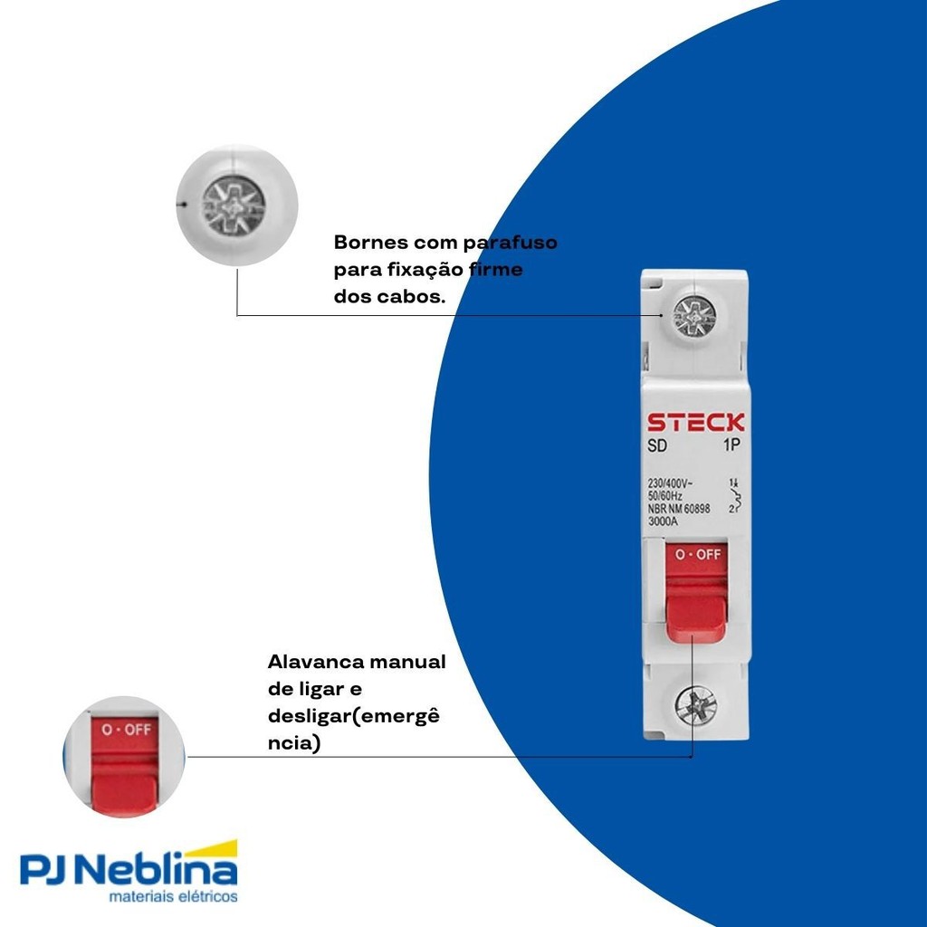 Código Interno: 19486700240 Código Fabricante: SDD61C10 Código Referencia: 19486700240 Disjuntor Mini Din Unipolar 10A Curva C 3Ka 230/400V Steck CARACTERÍSTICAS: - Tipo: Disjuntor Mini DIN: Indica que o disjuntor é projetado para ser montado em trilhos DIN, o padrão universal de instalação em quadros de distribuição residenciais - Pólos: Unipolar: Significa que o disjuntor possui apenas um polo de proteção. Ele interrompe a corrente em uma única fase do circuito. - Corrente Nominal: 10A (10 Amperes): Esta é a corrente máxima que o disjuntor pode conduzir continuamente sob condições normais de operação sem desarmar. - Tensão de Operação: 230/400V: Indica a faixa de tensão para a qual o disjuntor foi projetado para operar com segurança. - 230V: Tensão nominal para instalações monofásicas (fase-neutro) em muitos locais, ou entre fase e fase em sistemas 230V. - 400V: Tensão nominal para sistemas trifásicos (entre fases), comum em instalações comerciais e industriais, onde este disjuntor unipolar protegeria uma única fase. - Capacidade de Interrupção (Poder de Corte): 3kA (3.000 Amperes): Este valor crucial indica a corrente máxima de curto-circuito que o disjuntor é capaz de interromper de forma segura - Curva de Disparo: Curva C: A curva de disparo define o comportamento do disjuntor em situações de sobrecarga e curto-circuito - Curva C: É a curva mais comum para a proteção de cargas de uso geral. Ela dispara magneticamente (curto-circuito) quando a corrente atinge entre 5 a 10 vezes a sua corrente nomina APLICAÇÃO: - Circuitos de Iluminação: A proteção mais comum para sistemas de iluminação em residências e pequenos comércios. - Tomadas de Uso Geral (TUG): Proteção para circuitos de tomadas que alimentam eletrodomésticos (geladeiras, TVs, computadores, etc.) e outros equipamentos com consumo de energia moderado. - Circuitos de Pequenos Eletrodomésticos: Como ventiladores de teto, exaustores de banheiro, circuitos de campainha. - Circuitos de Força em Ambientes Residenciais/Comerciais Leves: Para pequenos motores de portões eletrônicos, bombas de água de baixa potência, etc., onde a proteção de uma única fase é suficiente. - Quadros de Distribuição: Componente essencial em quase todos os quadros elétricos de residências, apartamentos e estabelecimentos comerciais de pequeno a médio porte. ESPECIFICAÇÕES TECNICAS: Marca: Steck Referencia: SDD61C10 Linha: Mini Disjuntor Produto: Mini Disjuntor Disjuntor Mini Padrão: Din Polos: Unipolar Corrente(A): 10A Curva: Curva C Proteção: Termomagnético Capacidade Interrupção: 3Ka Tensão(V): 230/400V Frequência(Hz): 50/60Hz Após o período de garantia da loja de 30 dias, a tratativa de garantia deverá ser diretamente com o fabricante. GARANTIA DO FORNECEDOR: 30 Dias.