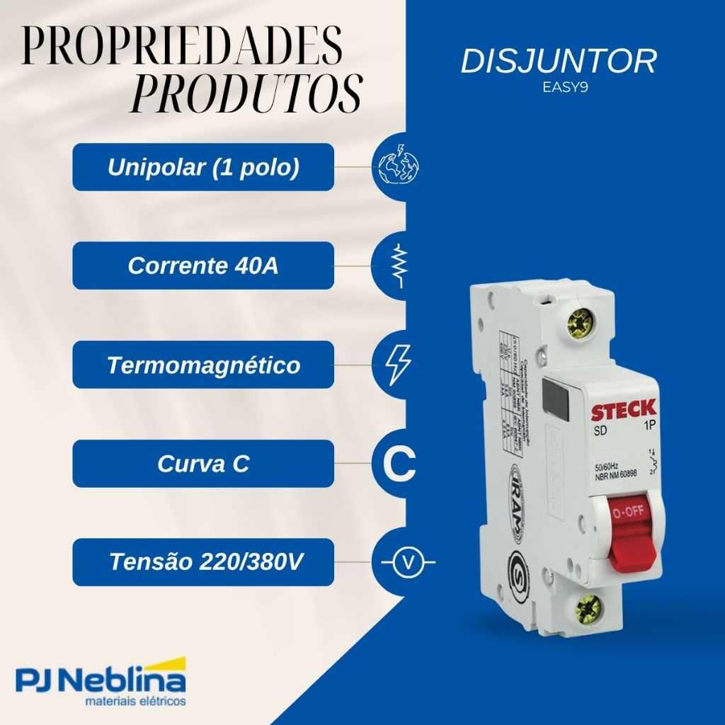 Disjuntor Unipolar 40A 220/380V 3ka Curva C SDD61C40 Steck