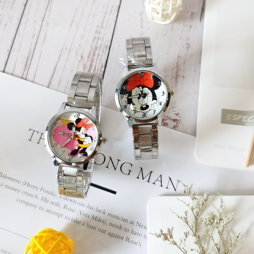 Disney Kids Watch Cartoon Mickey Minnie Quartz Relógio De Aço Inoxidável Correia À Prova D'água Presente De Aniversário De Férias