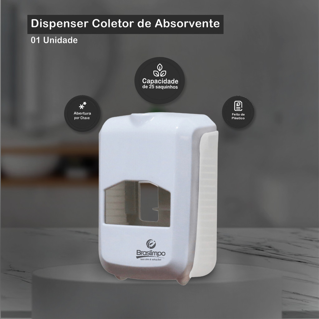 Dispenser Coletor de Absorvente Branco Cristal Elisa Plus com Logo Braslimpo