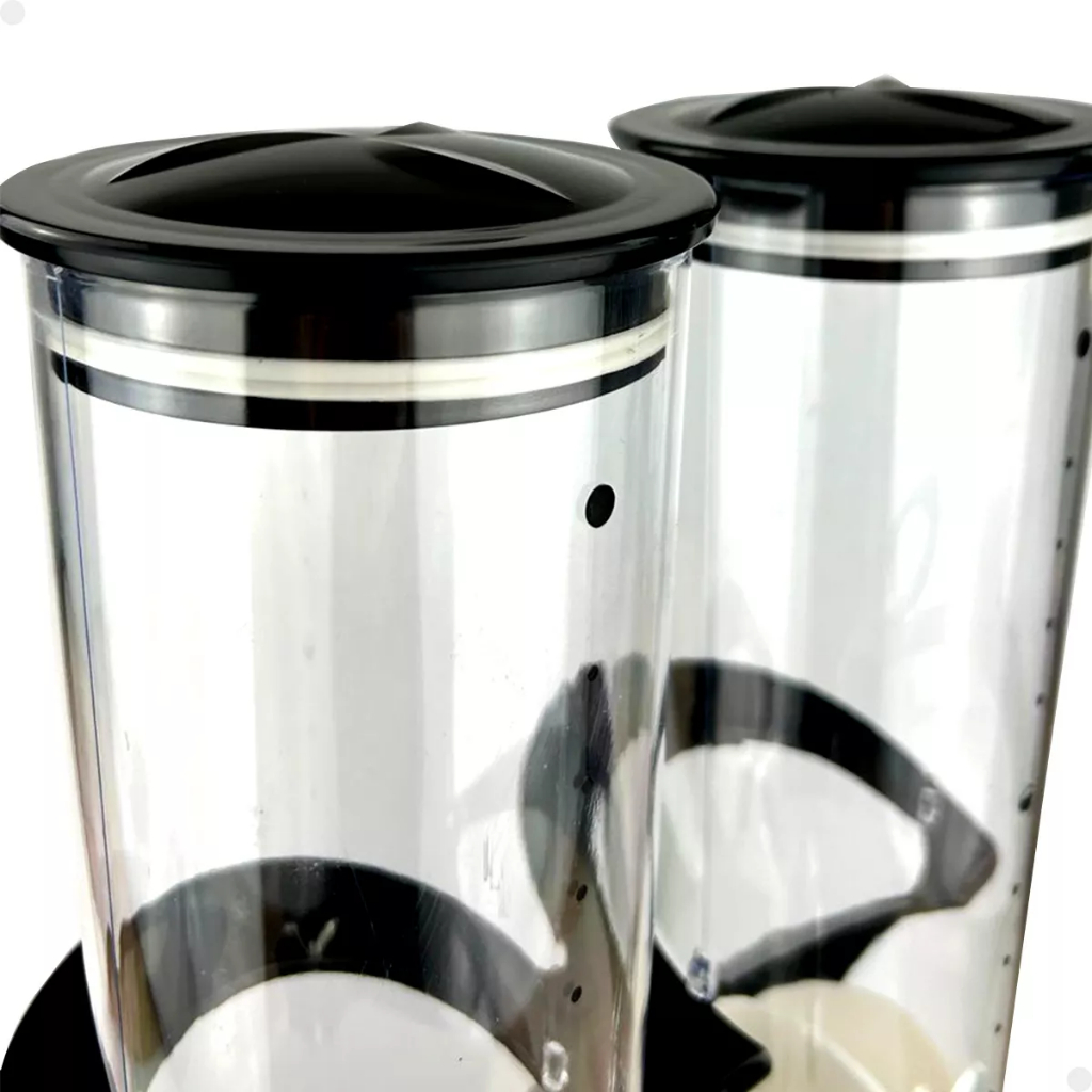 Dispenser De Cereais Duplo Acrilico 3 Litros Cromado E Preto