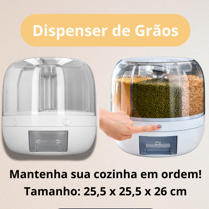 Dispenser de Cereais Giratorio com 6 Divisorias para Graos Cereais Arroz Farinha Feijao