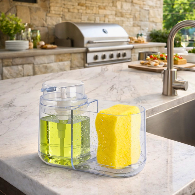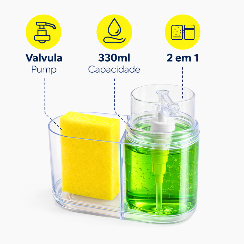 Dispenser Detergente 330ml Porta Esponja Organizador Pia Cozinha Transparente Primax