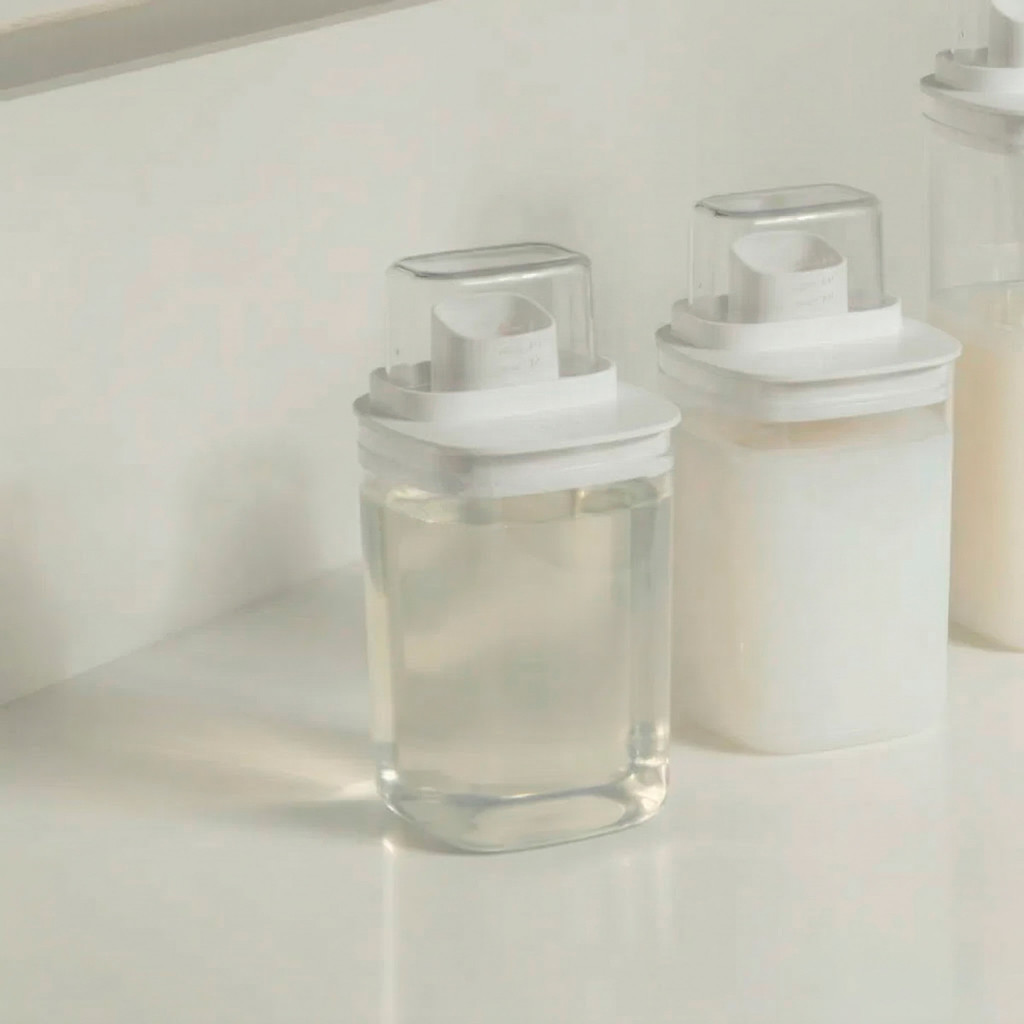 Dispenser Organizador Sabão Amaciante Desinfetante 1L Linha Flow Dosador c/ Corpo Transparente OU