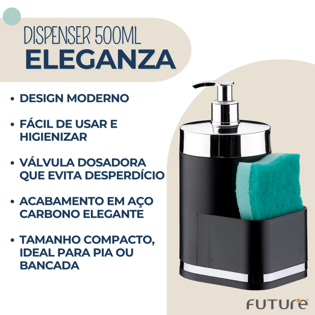 Dispenser Para Detergente Bucha de Pia Preto Cromado Suporte Organizador Esponja Future