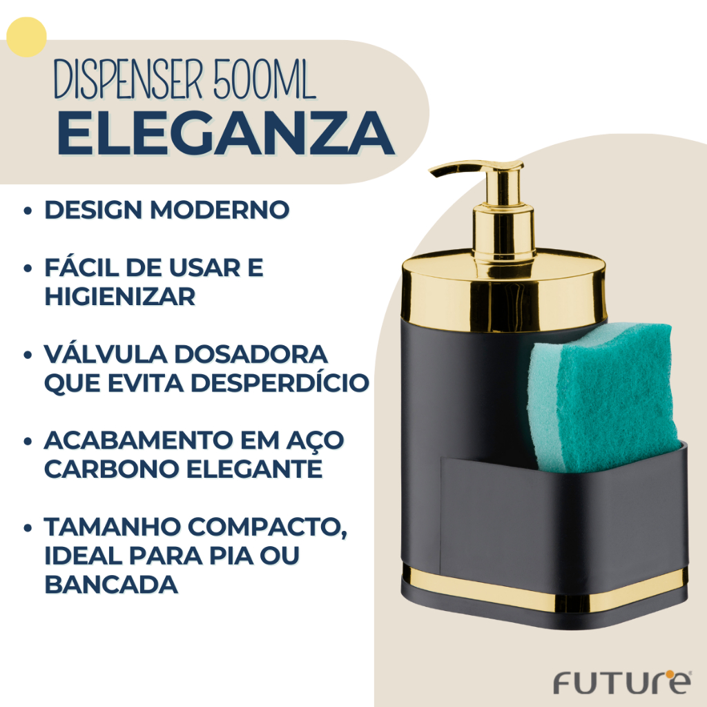Dispenser Para Detergente Bucha de Pia Preto Dourado Suporte Organizador Esponja Future