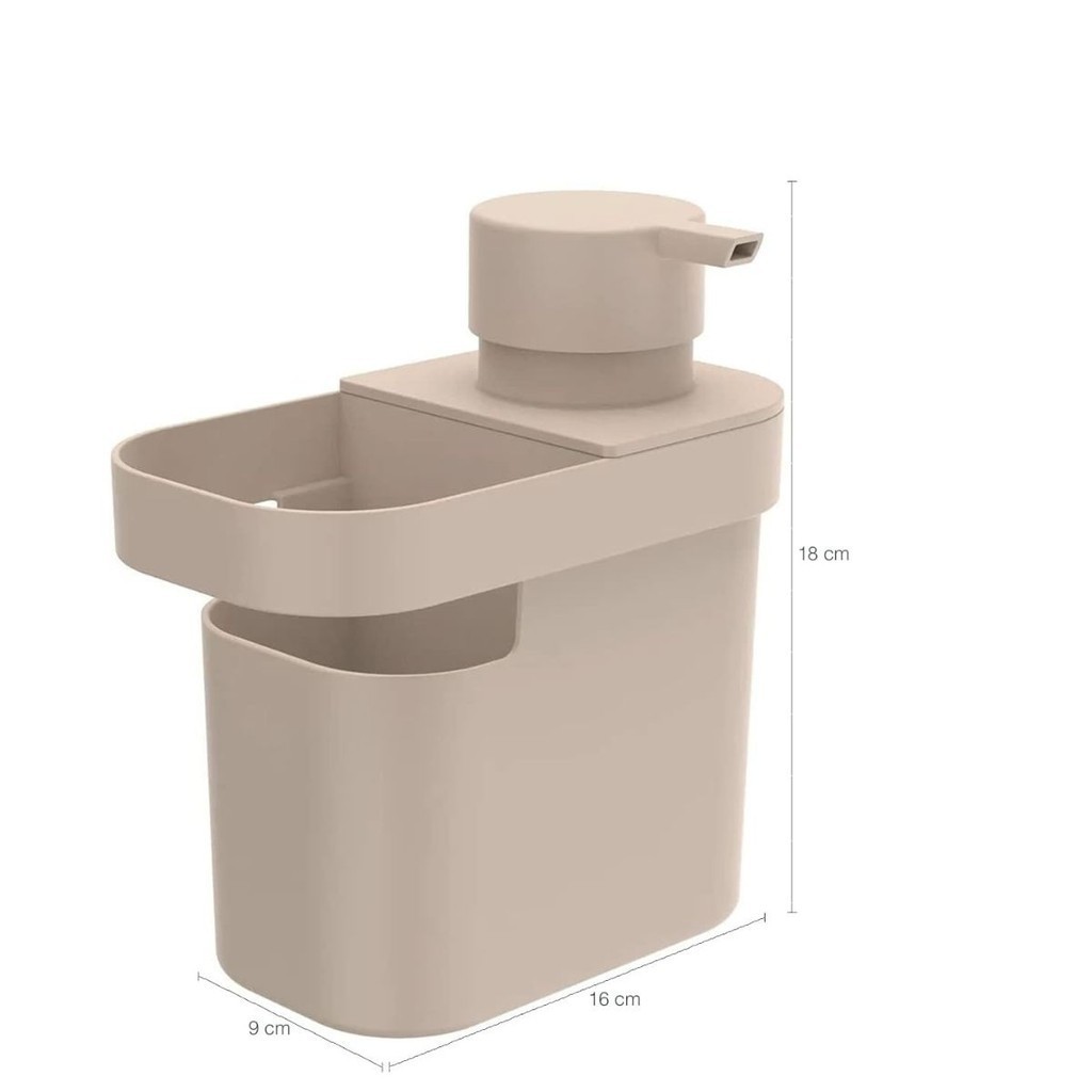 Dispenser Porta Detergente Bucha Buchinha Com Organizador De Pia 650ml Cozinha Bege OU