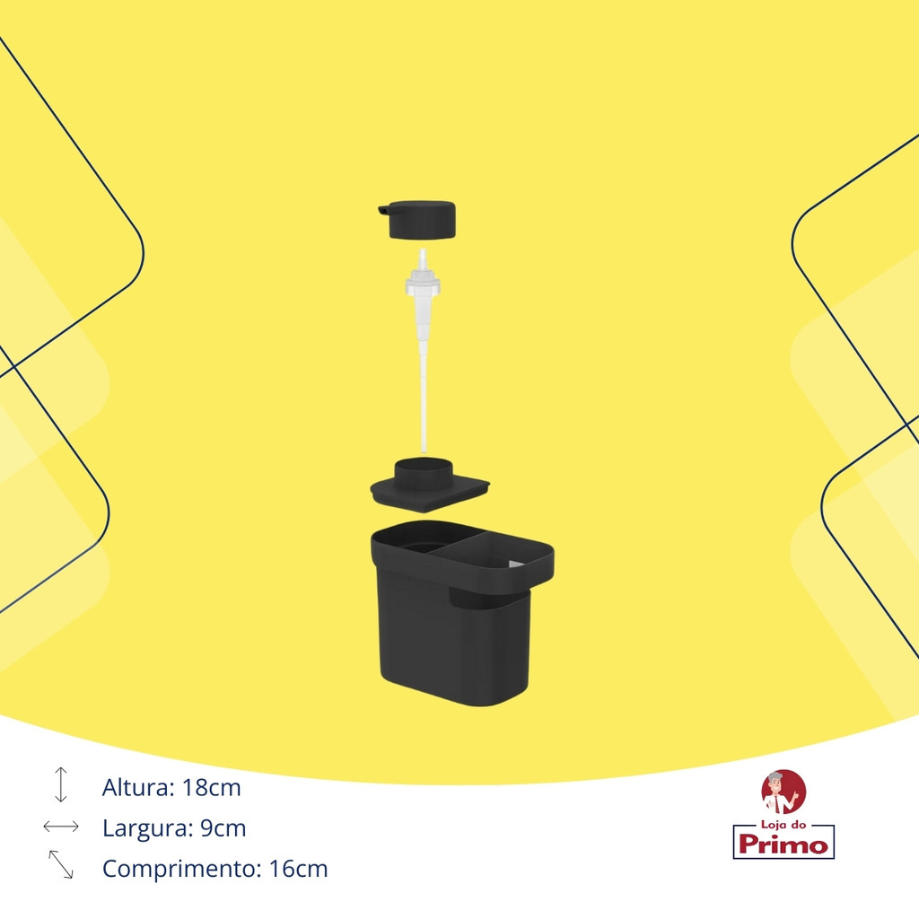 Dispenser Porta Detergente Bucha Buchinha Com Organizador De Pia 650ml Cozinha Preto OU