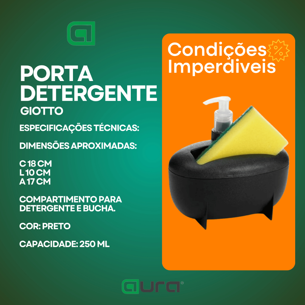| Dispenser Porta Detergente com Porta Esponja Preto Giotto este produto | R$ 21,90 | 37% | 5.0/5 | — |