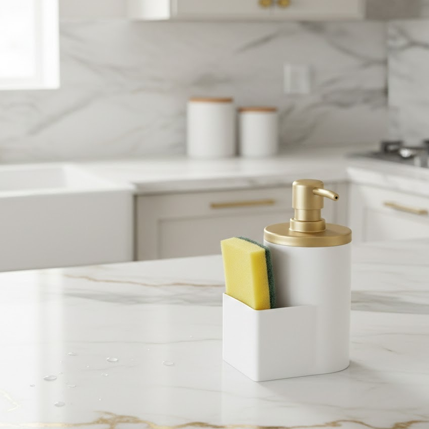 Dispenser Porta Detergente e Bucha Branco e Dourado - Arthi 1164