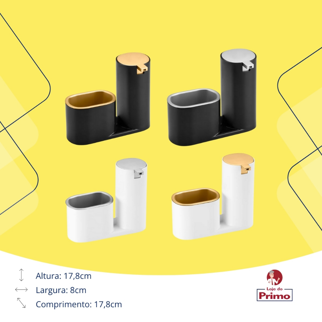 Dispenser Porta Detergente E Bucha Buchinha O dispenser para detergente e bucha é uma peça feita para quem precisa de praticidade e elegância em sua cozinha. Com um design moderno e uma distribuição de seus compartimentos muito bem localizada, o dispenser é a peça que faltava em sua pia. Projetado em plástico polipropileno, garantindo que o produto tenha maior durabilidade possível. Dimensões do produto: Comprimento: 17,8 cm Largura: 8 cm Altura: 14,6 cm • Material: Plástico • Resistente • Dispenser de rápida manutenção • Design sofisticado e inovador • Material de fácil Limpeza • Com suporte removível, para sua bucha ficar sequinha. O Dispenser para detergente e bucha é ideal para você que quer organizar sua cozinha/pia/bancada com um toque de sofisticação. Loja do Primo Variedades.